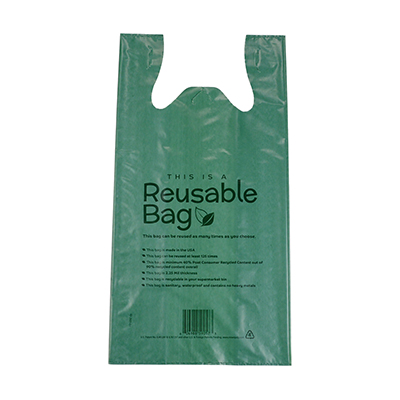 12" x 7" x 23" Reusable T-Shirt Bag - Green (2.25 mil)