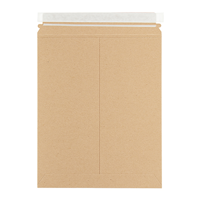 Rigid mailers protect contents from bending and creasing. Sizes listed are outside dimensions. 100% recyclable and made from recycled content.