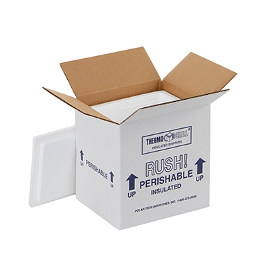 Helps keep perishable goods cool while in transport. Seamless, molded polystyrene body has tight-fitting lid. Corrugated box is pre-assembled around foam insert for extra protection. Wall thickness is 1".