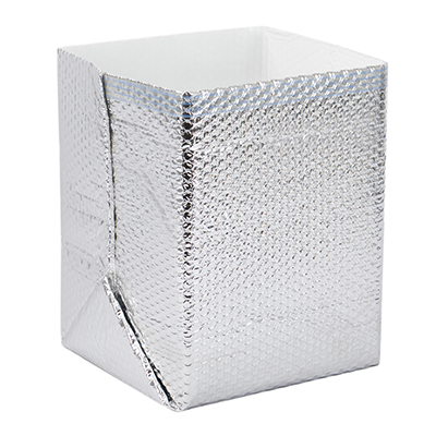 Foil laminated, metalized bubble liner helps provide short-term impact and thermal protection against three types of heat flow: conduction, convection, and radiant heat. Flexible liner with peel-and-seal adhesive closure is lightweight, leak-resistant, and can be used as a moisture and vapor barrier. Meets FDA specifications for incidental food contact.