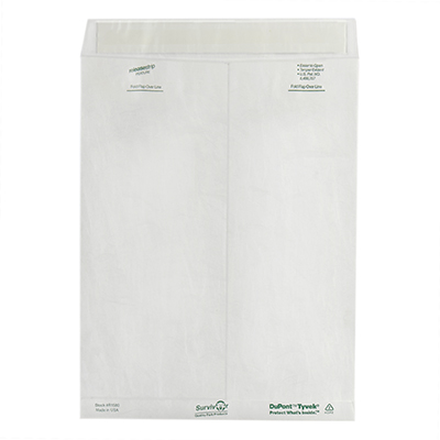 Spunbond olefin material resists rips, punctures, water and chemicals. Self-sealing strip for fast, easy closing. Half the weight of paper saves postage.
