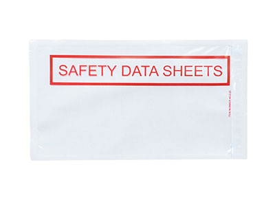 The pressure-sensitive adhesive attaches to paper, metal, wood, corrugated, or plastic. Back-loading envelopes have a tamper-evident pocket and must be cut open to retrieve documents. Made from low density polyethylene. Open end is first dimension listed.