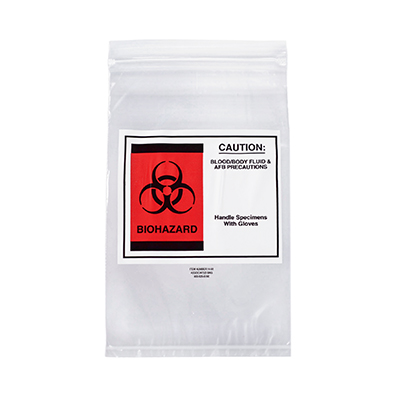 Safely transport specimens and documentation. Zipper bag keeps specimens secure and protects against accidental spills. Separate pouch holds accompanying documents. Pouch size is 6" x 8-1/2". Spot welds strengthen the zipper and create strong stress point support, but slightly narrow the bag opening. Helps meet OSHA 29 CFR 1910.1030 requirements.