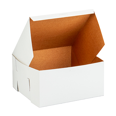 Protects and holds bakery items neatly. One-piece boxes have a locking corner to help keep contents secure. Made from 100% virgin kraft board. Meets FDA specifications for food contact.