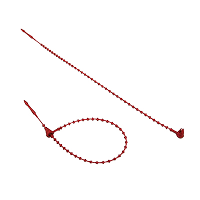 An inexpensive alternative to standard nylon ties. Head can be locked between beads to allow different lengths. Self-locking, tamper-evident tie must be cut to remove. Additional dimensions: thickness - .070".
