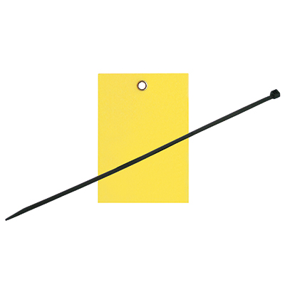 Tear-resistant, 15-mil matte tag has a reinforced metal grommet hang hole. Includes self-locking 9" black nylon ties (not inserted).