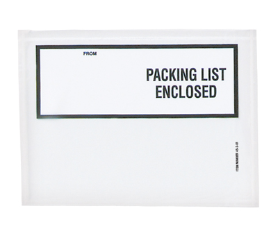 The pressure-sensitive adhesive attaches to paper, metal, wood, corrugated, or plastic. Back-loading envelopes have a tamper-evident pocket that must be cut open to retrieve documents. Made from low density polyethylene. Open end is first dimension listed.