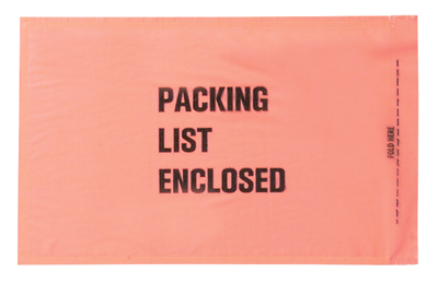 5-1/4" x 8" Orange Tinted Back-Loading Printed Packing List Envelope - "Packing List Enclosed"