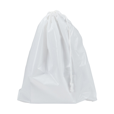 Reusable bags have single drawstring closure. Bottom gusset expands to fit bulky items.